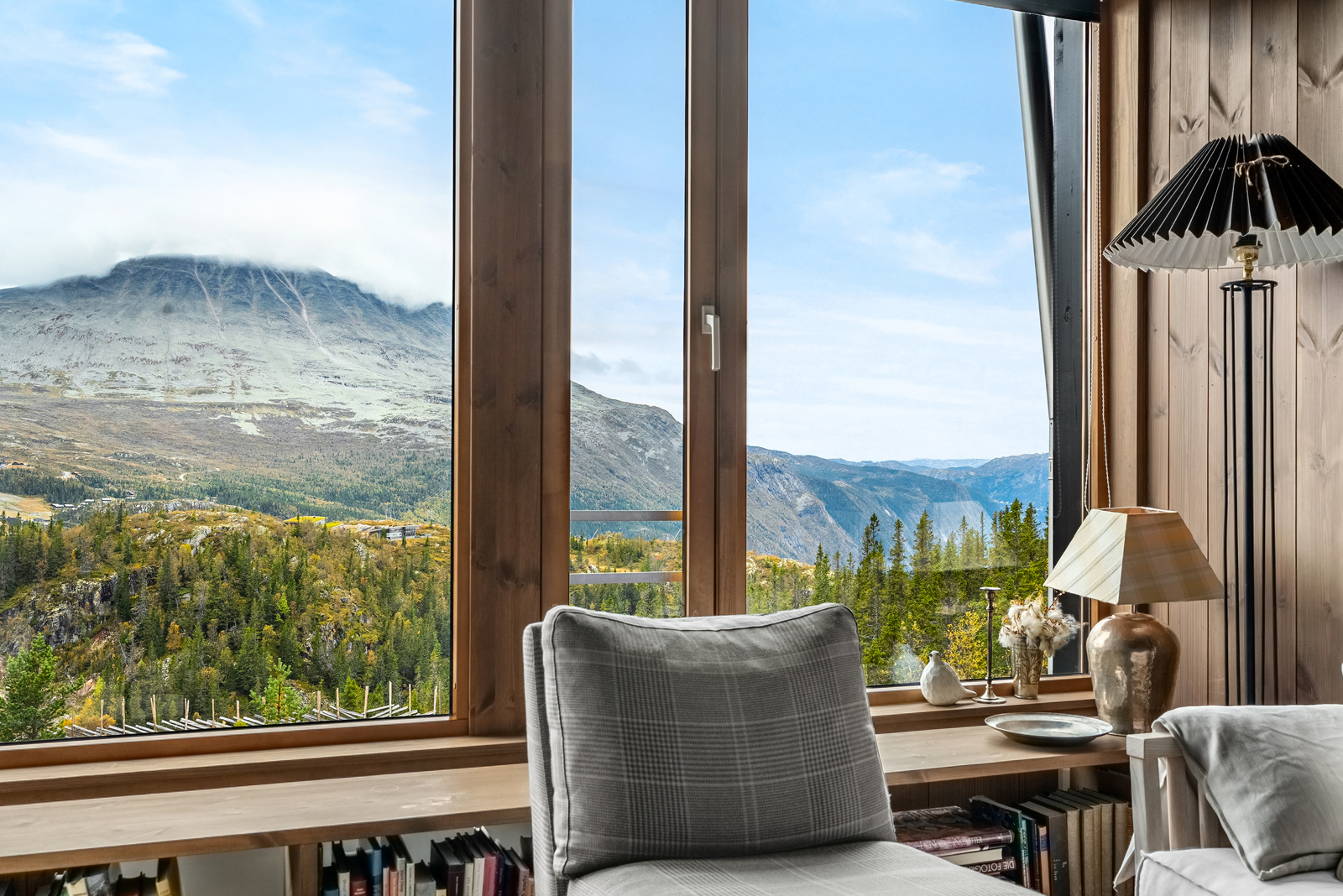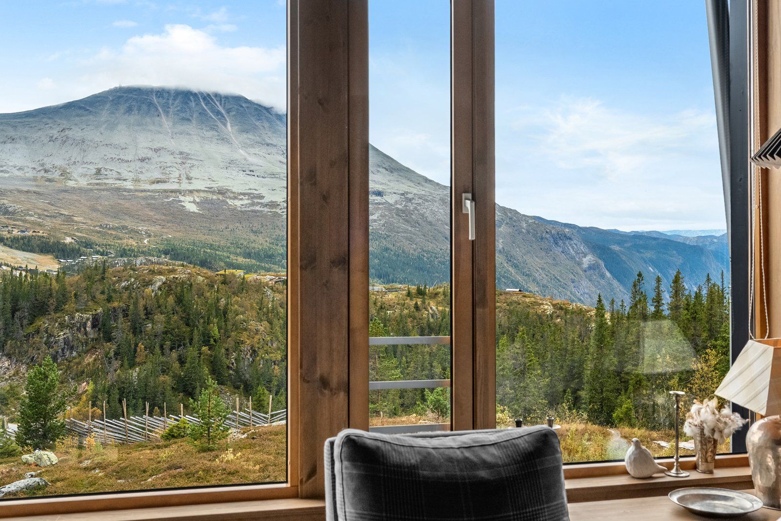 langstrakt utsikt mot Gaustatoppen og den storslåtte fjellheimen rundt. Her bor du midt i hjertet av fjellet