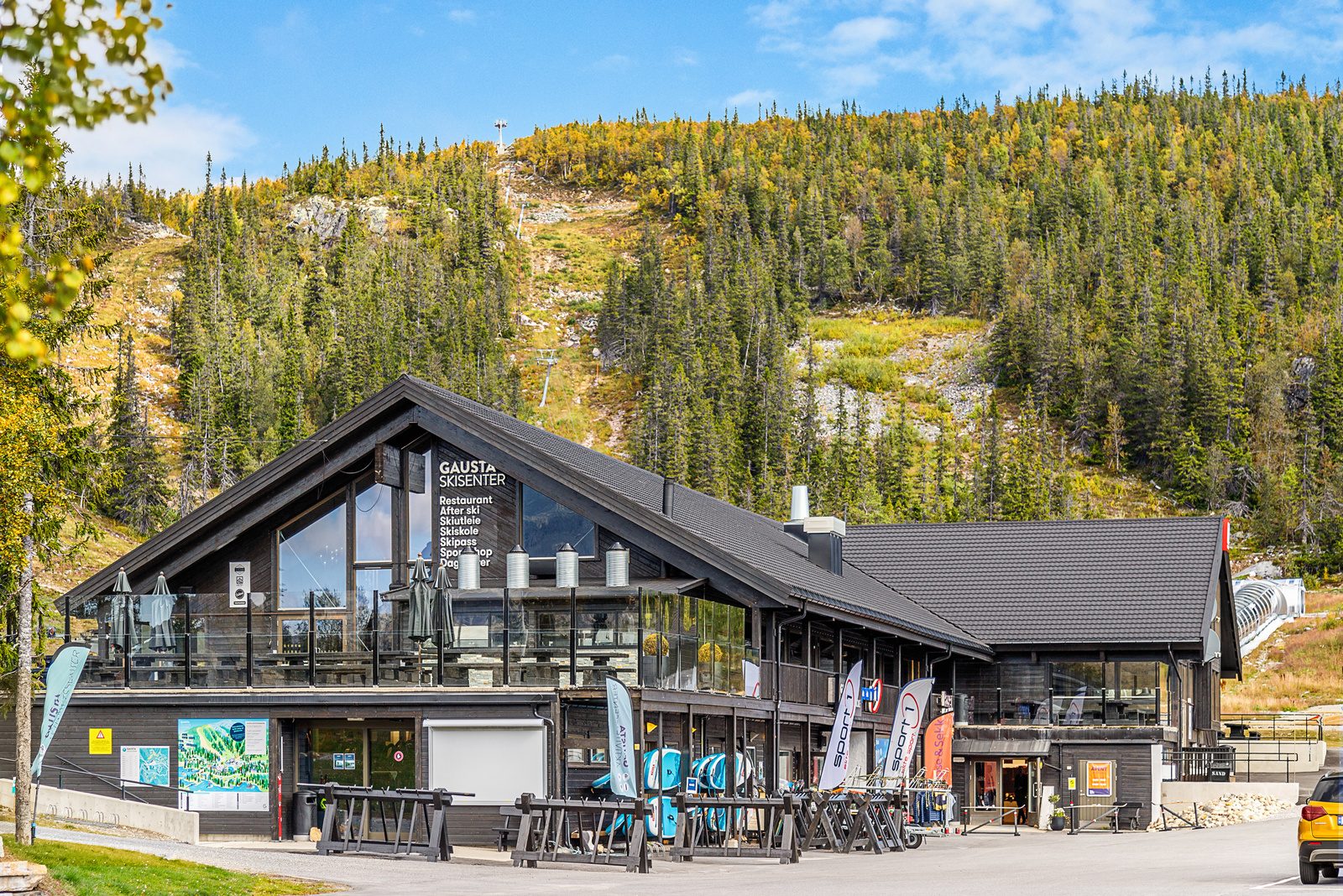 Den Lykkelige Sportsmann og Bygget, med et variert utvalg. Ved Gausta skisenter finner du